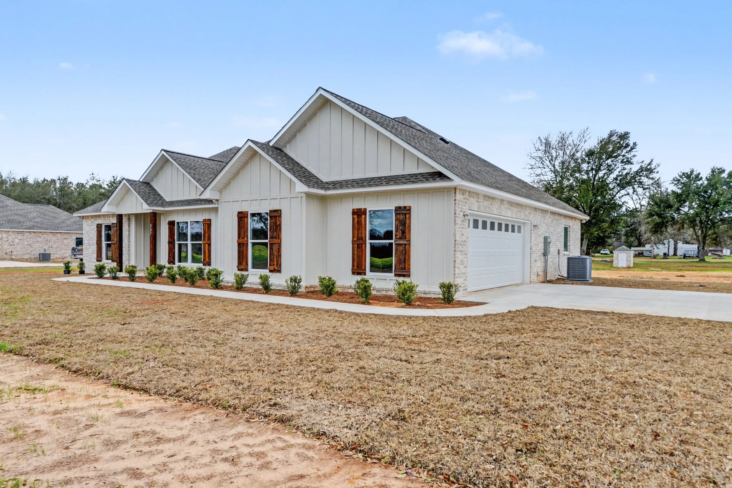 This brand-new 3-bedroom, 2-bath home located in the quiet rural area of George County won’t last long! This thoughtfully designed home offers an open living space, modern finishes, and comfortable bedrooms with a custom kitchen & island! This home features split bedroom floor plan & the owner’s suite features separate tub and shower. The carport provides convenient covered parking, and the spacious yard offers plenty of room to enjoy country living. This home offers a great opportunity to own a new home with peaceful surroundings while still having convenience!